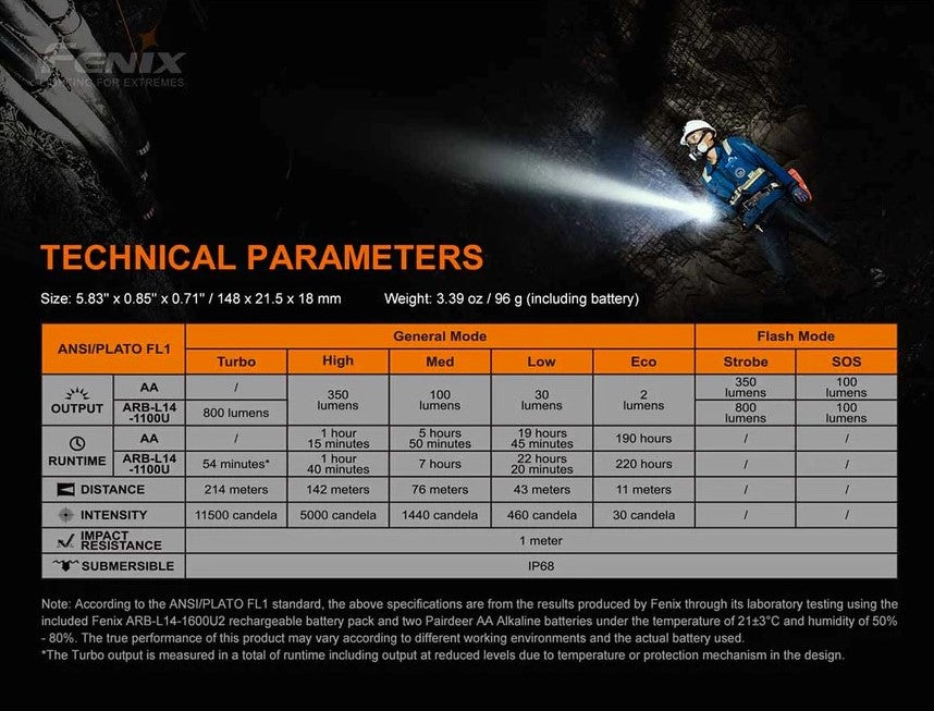 - Uses a Luminus SST20 WXS LED with a lifespan of 50,000 hours.